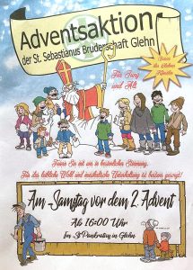 Wie im letzten Jahr veranstaltet die St. Sebastianus-Bruderschaft Glehn ihre Adventsaktion zu Gunsten der "Aktion Glehner Sorgenkinder" am Samstag vor dem zweiten Advent im Gemeindezentrum.